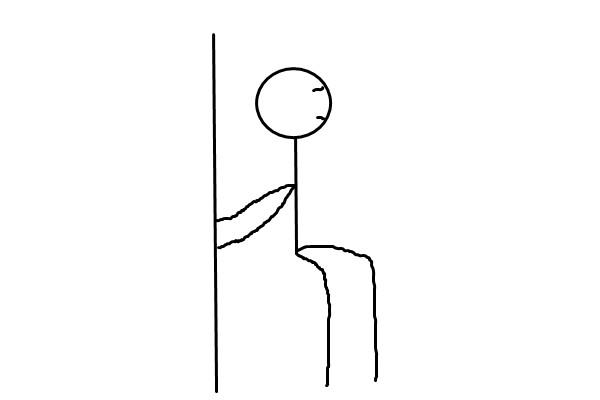 1、背向墙面,手臂弯曲,两手向后支撑墙面。两腿分开与肩同宽,然后沿着前面慢慢向下深蹲,保持姿势30秒后,恢复原位,再重复动作。