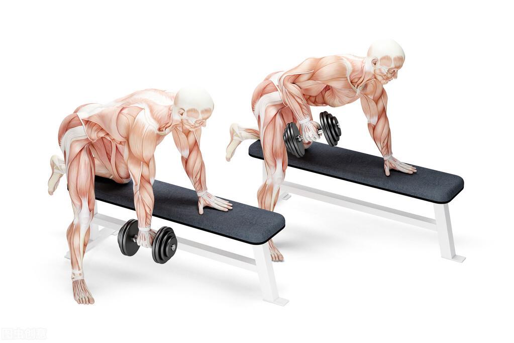 动作2、哑铃单臂划船