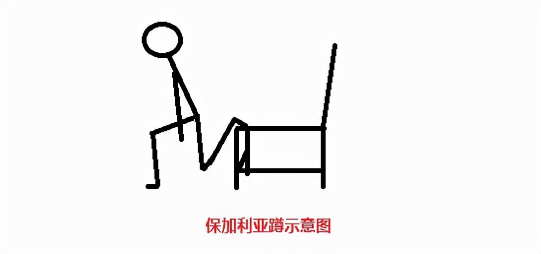 臀肌与腰、腿相连,若臀肌(尤其是臀大肌)不够强,就无法保持腰椎和下肢的稳定,继而诱发骨盆前倾、力线畸形、腰腿不适等症状。换句话讲,若出现骨盆前倾、腰腿部不适等问题,就有可能是臀部肌肉力量不足的表现。臀大肌力量强弱与否,可以使用保加利亚蹲来测试:找一把跟膝关节平齐的椅子,背对椅子站立,站在离椅子约一臂远的距离,将右脚背放在椅子面上(以测试左侧臀大肌为例),双手叉腰,身体重心放在左腿,下蹲(左腿膝盖不要超过脚尖,可以适当调整前脚与椅子的距离),然后再起身,如此反复做蹲起运动,两侧都能连续做15个为达标,否则,就可能是臀大肌力量不足。