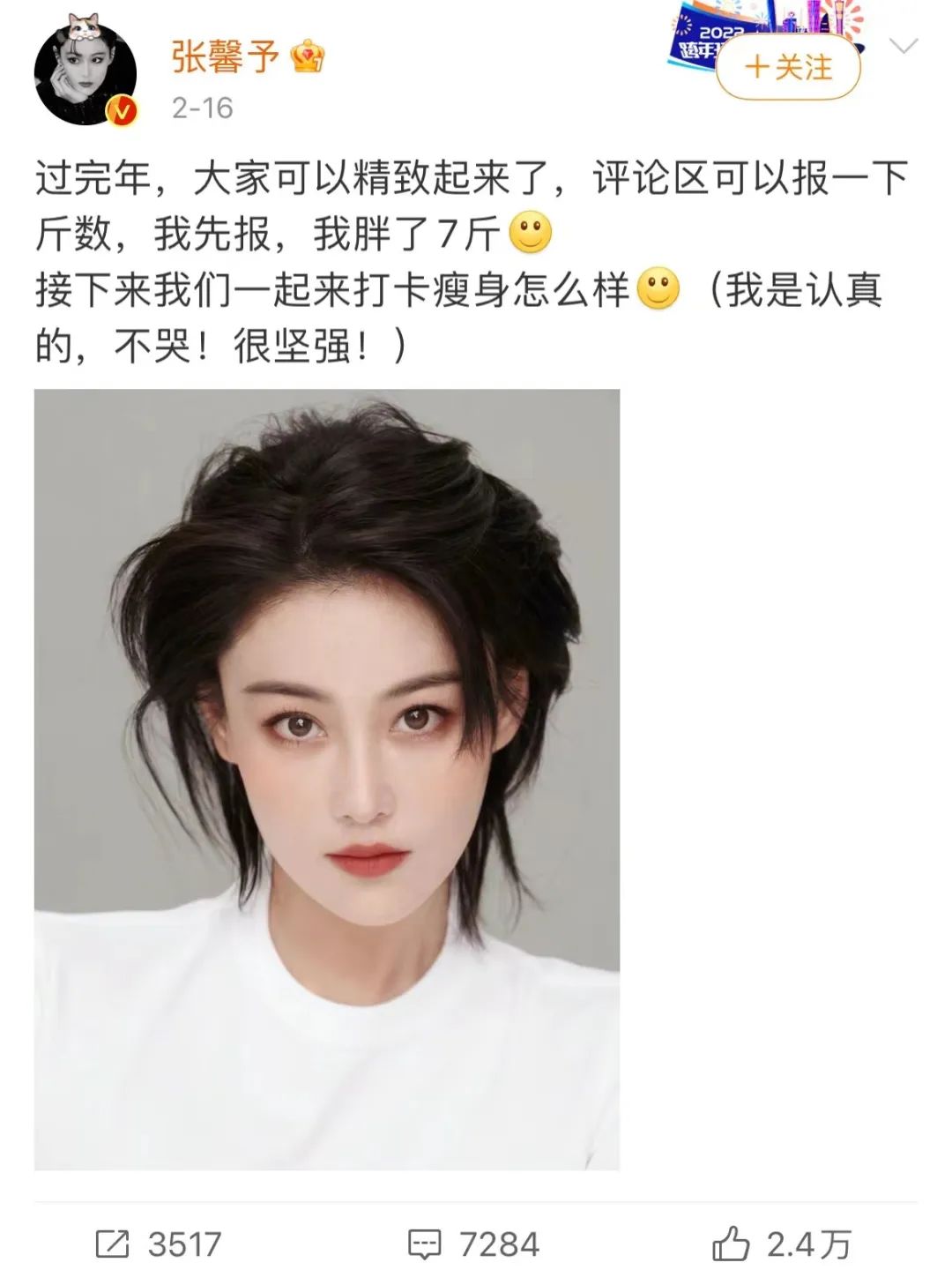 张馨予作为女明星居然真实地告诉大家,过年胖了7斤(女明星胖了也是刚刚好)。她近也一直在瘦身打卡中,除了运动之外,她在饮食上也花了不少心思。