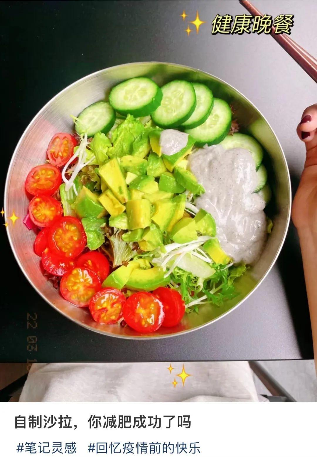 她近会分享一些低脂的食物,比如魔芋米饭、自制沙拉等,把高蛋白质放在午饭食用,这样晚上吃点草,不会太寡淡也不会太有负担。不过近她也进入到了不掉体重的瓶颈期,其实减重期间,不要过于在意数字,身体也需要一个适应的过程,坚持就能看到果。