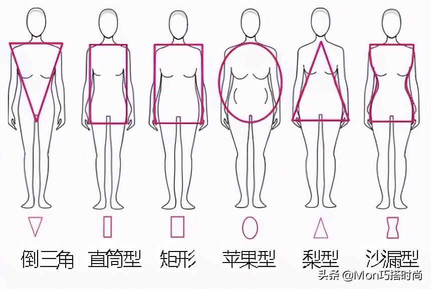 苹果型身材,梨形身材、直筒型身材,倒三角形身材都属于现在常见的身材类型,不管你是哪一类,其实都有一定的身材问题,根据下面的图片对比,我们也可以发现自己的身材到底是属于哪一种。