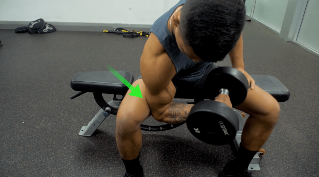 二头肌可以进行直立哑铃弯举,坐姿哑铃集中弯举。