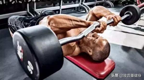 三头动作1:仰卧杠铃臂屈伸这个动作又名:头颅粉碎者,是不是觉得很恐怖?