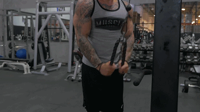 有一个小技巧分享给大家:向下拉绳索至顶峰时,再做一个双手拉动绳索向外掰的动作,使掌心朝下,会进一步刺激肱三头肌收缩,小伙伴们下次做动作时可以尝试一下。