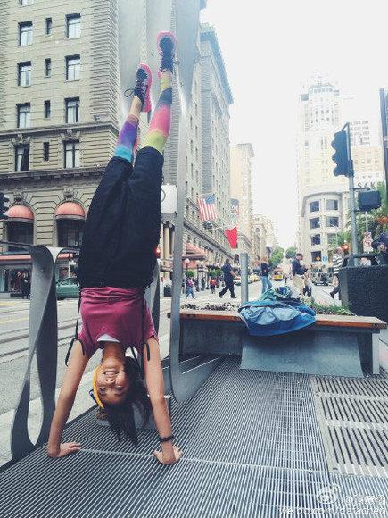 还有元气少女陈意涵,真是走到哪儿倒立到哪儿