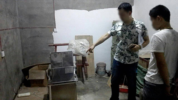 2017年,娄底市警察局在悬崖边的民房里,查封了一处减肥药生产基地。