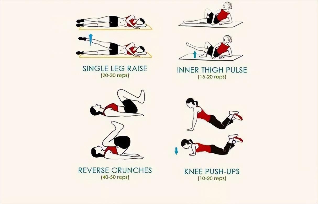侧躺在瑜伽垫或者床上,用一只手撑住头部,另一只手叉腰,将上面的腿水平向上抬起,保持腹部收紧,重复20-30次一组,换另一只腿进行。