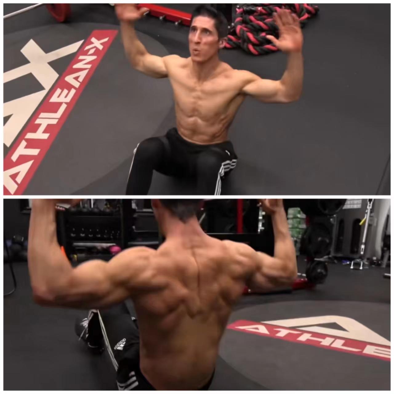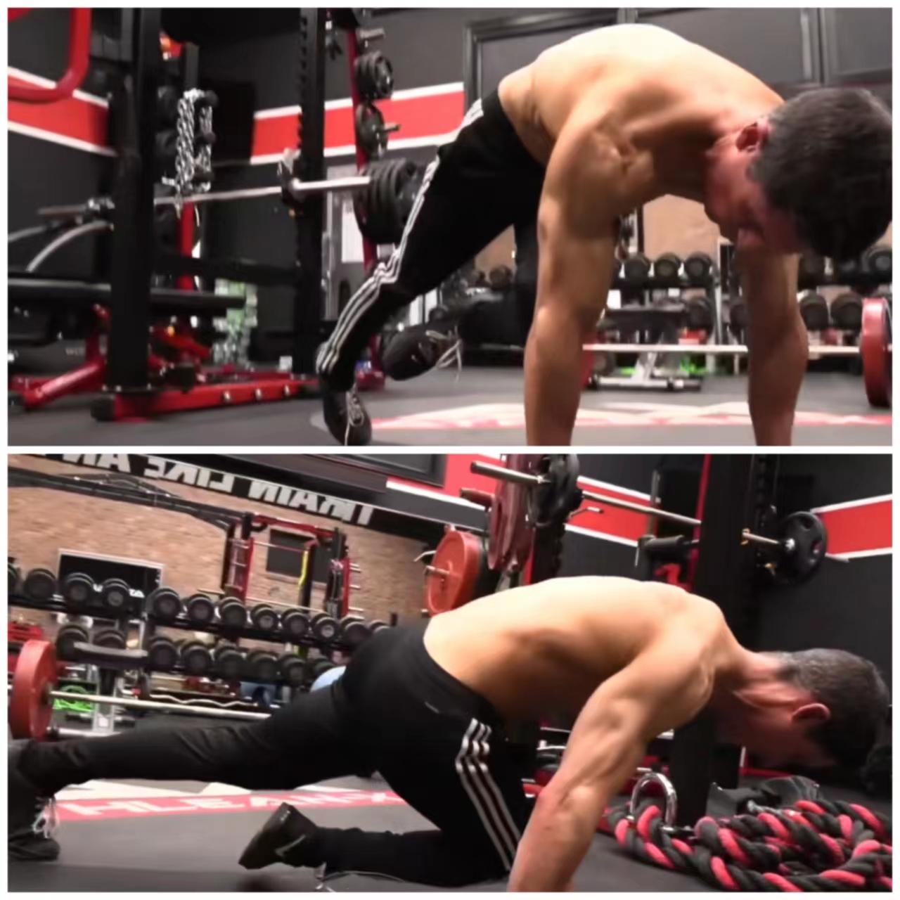 这个动作用到了旋转、骨盆前倾,同时需要腹内压来维持稳定。他主要是训练我们的下腹部和人鱼线的位置。