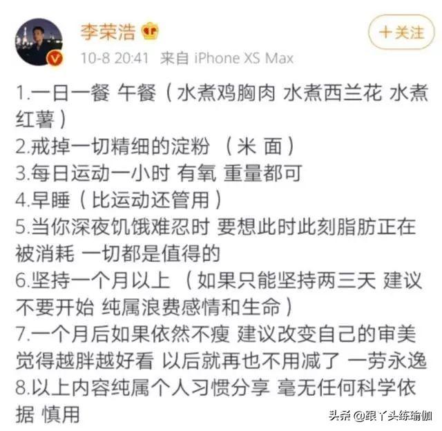 李荣浩成功一个月瘦身16斤,看看吃的什么?对自己够狠。感叹!!