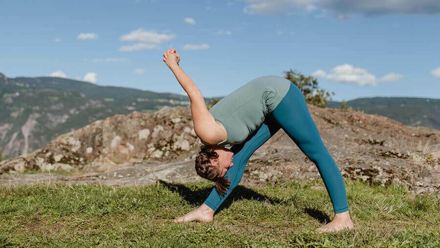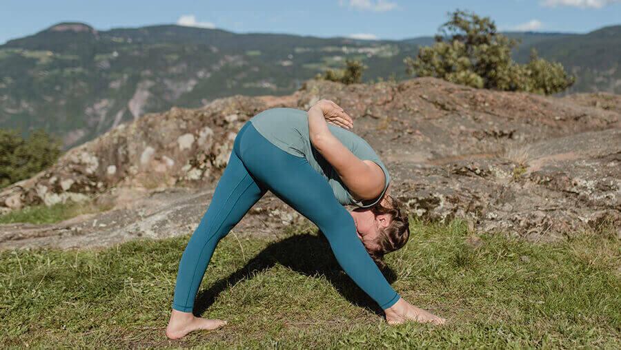 动态练习:在半前弯和全前弯之间动态地来回切换。与呼吸联系起来。吸气,抬起成直背,呼气弯曲成前弯。