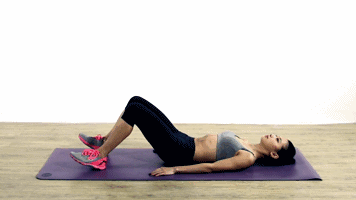 仰卧与垫子弯曲膝盖脚掌支撑地面,双手放在身体两侧掌心贴地,脚尖翘起脚跟着地,呼气臀部向上抬高同时脚尖带动髋关节外旋,可以加强臀部肌肉收缩,更加集中训练臀部,塑造臀型。每组15个,完成4组。