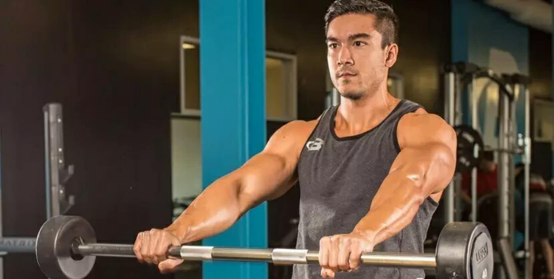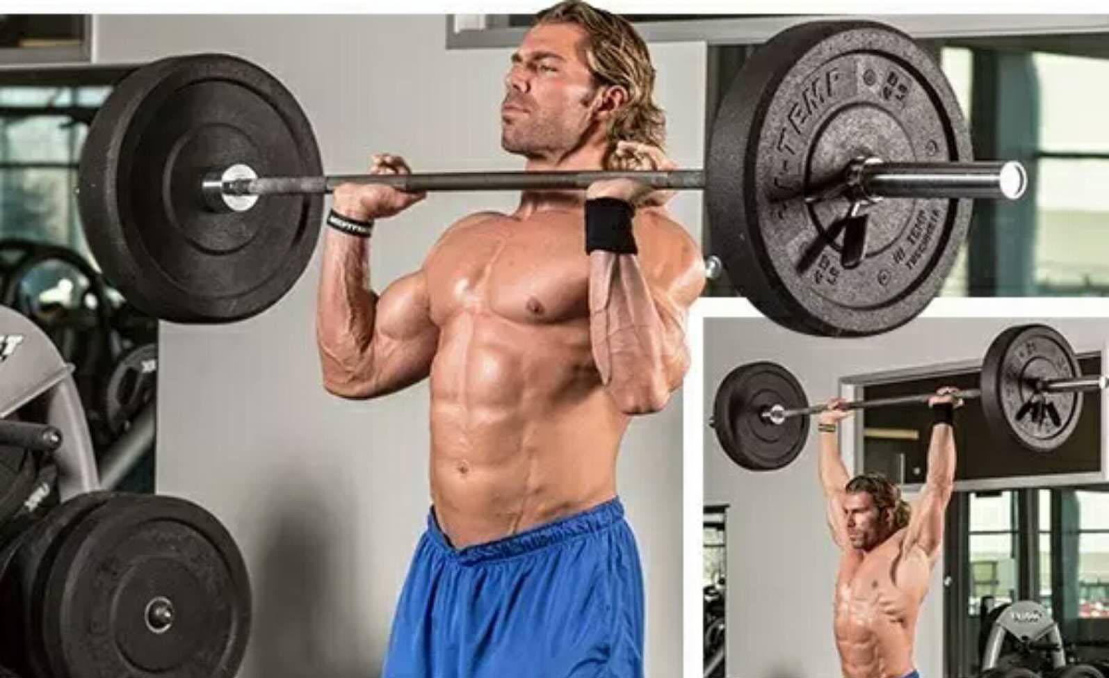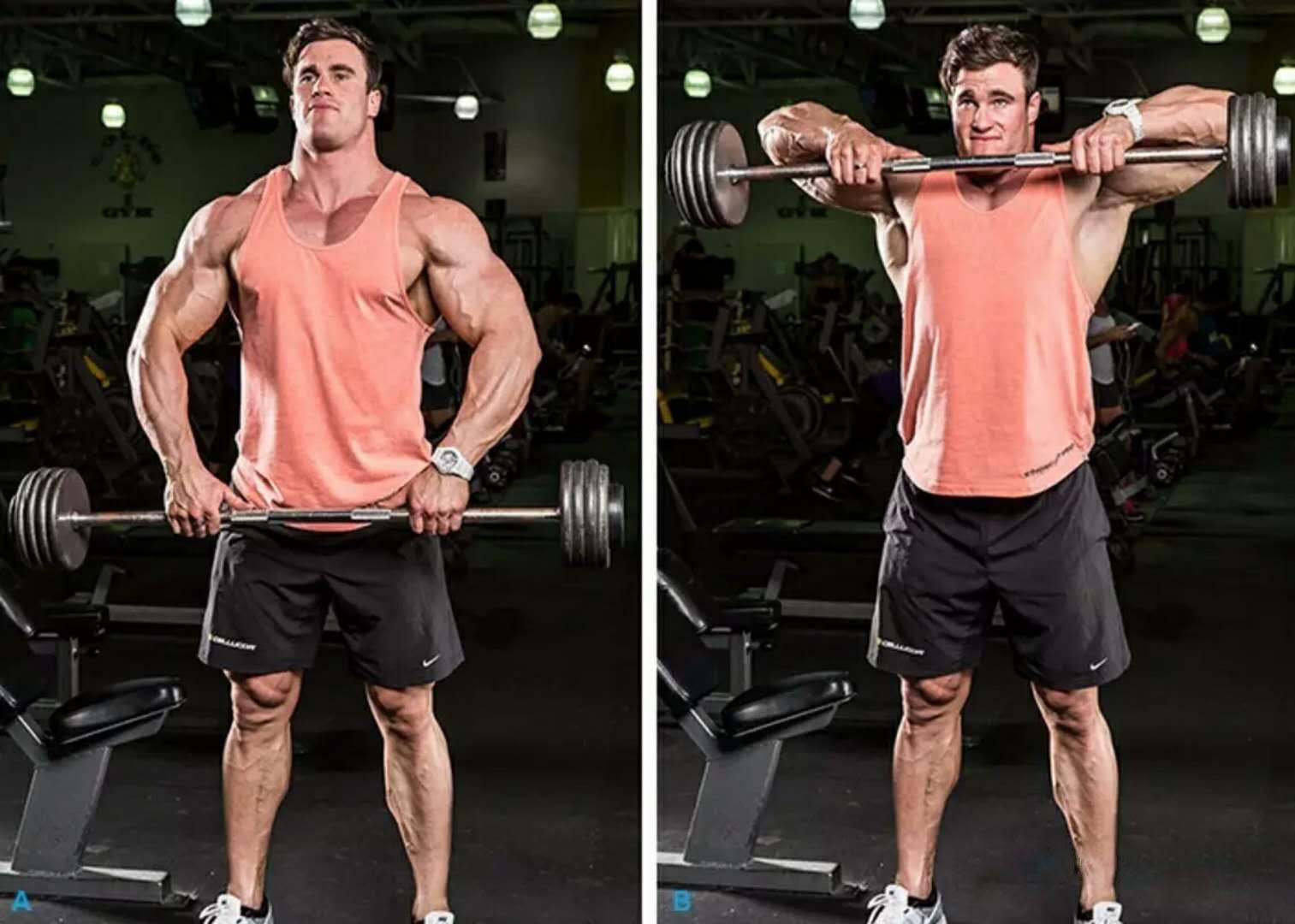 使用宽,并不是超宽的握距来练。假如你使用杠铃,你的手要比肩宽宽10cm。要知道当你找到你的“刺激点”,你会感受到三角肌中束强烈的泵感。如果你觉得斜方肌受到的刺激更多,那是因为你的握距太窄了。