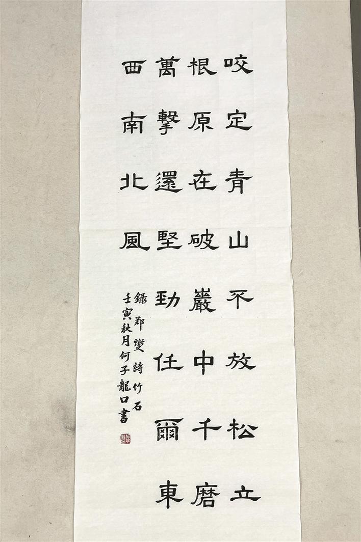“何子龙的书法底子很好,他的‘口书’是他写书法的方式和习惯,而不是一种‘炫’。他的作品能在全网获得那么多的点赞,都是靠实力。”汪永江很看好何子龙在书法道路上的发展前景,“他的书法体很正,从小奠定了一个好基础,如今经过二十多年的不断积累和沉淀,达到了一个新的高度。”