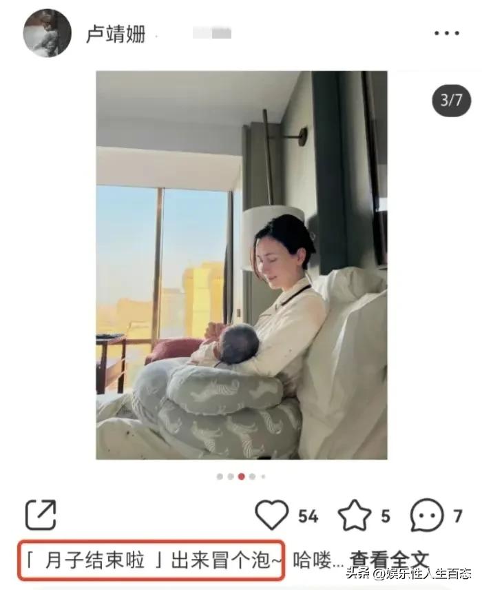 照片中的卢靖姗正在给小宝宝哺乳,卢靖姗看着女儿吮吸着乳汁,不经意间嘴角微微上扬,浑身散发着满满的母爱。