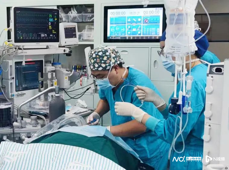 中大五院相关负责人介绍,整场手术较为突出的难点在于,如何对周先生进行麻醉。手术当天,由于周先生肥胖程度较重,麻醉师甚至难以辨识周先生的外周血管。几次外周静脉穿刺失败后,手术麻醉医学部刘德昭主任决定,采用局麻下超声引导深静脉穿刺置管的方式,对周先生进行麻醉。