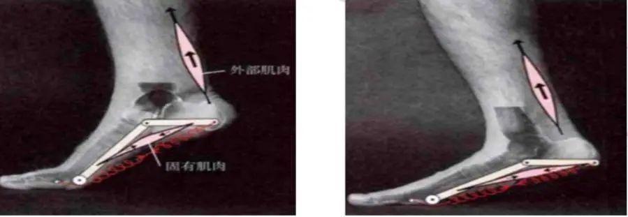 但如果足底筋膜做过手术丧失了原来的张力,或足部出现旋前不稳定的状态也就是扁平足的状态时小腿三头肌收缩牵拉跟骨向上运动时,从而将力量转变为牵拉足底筋膜,可以导致足底筋膜的炎症和跖屈动作的减弱。