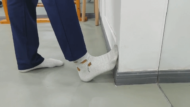缩足运动:坐位,小腿与地面垂直。在脚趾不弯曲的情况下,将足弓向上拱起,用力的将脚缩短。