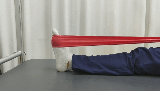 胫骨前肌的训练:弹力带抗阻做踝背屈内翻的动作