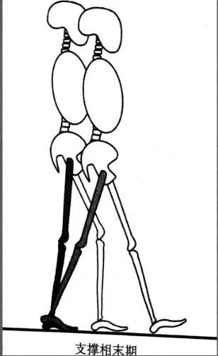 在步态分析中小腿三头肌发力较多的是在支撑中期,尤其是在支撑未期,摆动前期,双侧下肢是交替运动的。当一侧踝关节跖屈蹬地时推动身体向前时,对侧的髋关节是屈髋的一个状态,使对侧的下肢摆动向前,此时一侧的小腿三头肌和对侧的髂腰肌是协同肌。如果对侧的髂腰肌无力,那么小腿三头肌就会发力过多去代偿从而导致粗壮。