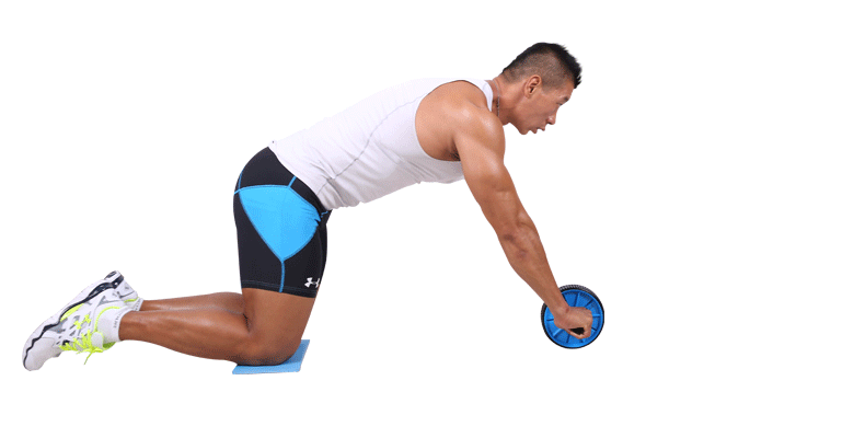 锻炼的时候双膝跪地,双手持把手,把腹肌轮置于身体前侧。向前滚轮,而后运用腹部力量回归原位也可站立进行,不过此种难度较大。
