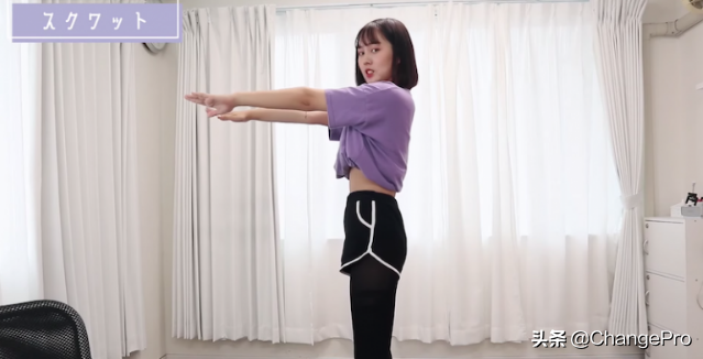 5.箭步蹲大腿与地面平行作箭步蹲,小腿与大腿之间成90度,每天做30下。