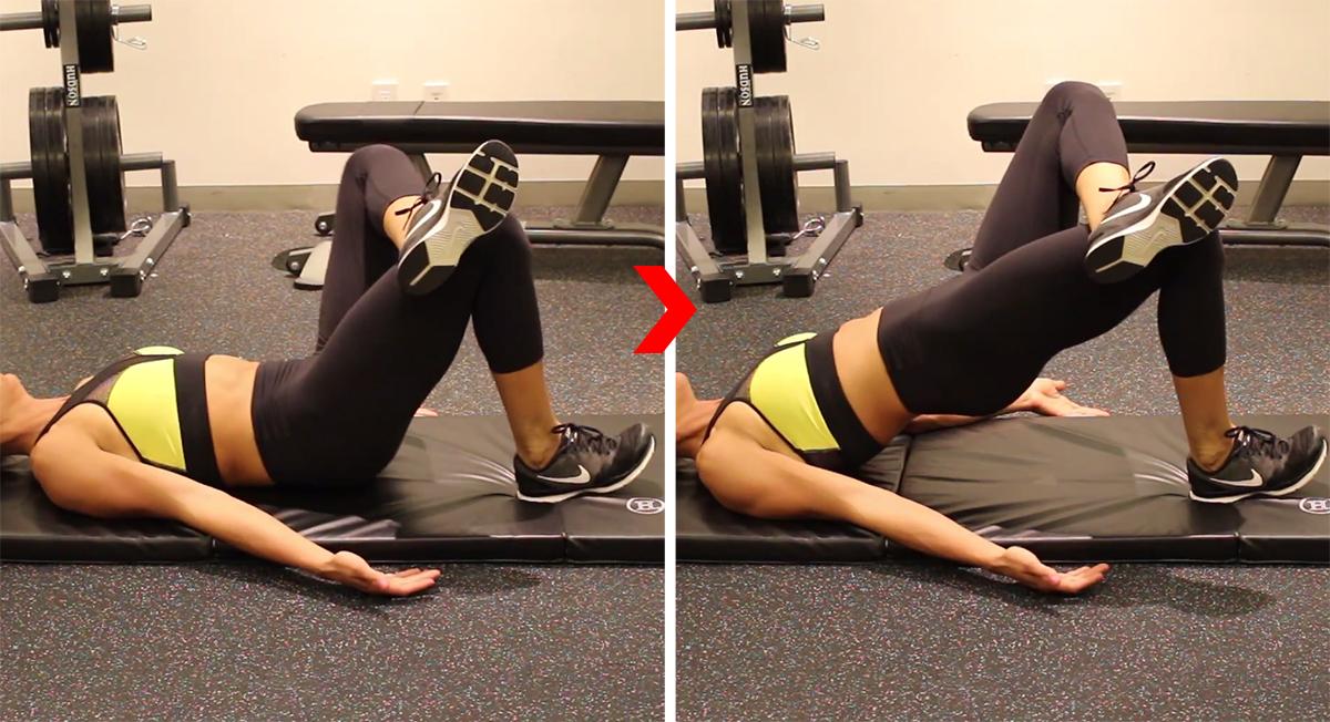第一个动作是针对臀大肌的“臀桥”。