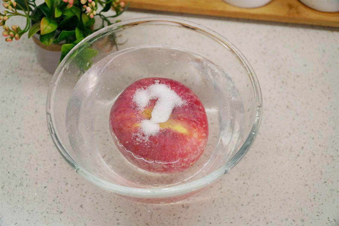 1、苹果清洗时,在苹果的表皮上撒上一勺食盐,将苹果搓洗一下。食盐具有很好的杀菌消毒作用,用盐搓洗可以利用摩擦力洗掉苹果皮上的果蜡和残留的脏东西,搓洗好后再用清水冲洗干净。