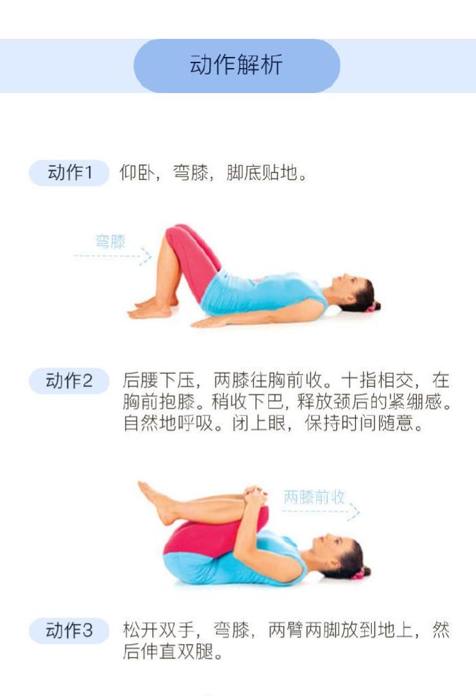 是一个舒服又简单的练习,不仅能伸展腰背、消除紧张、促进消化,还能舒缓神经,是酣睡的好帮手,也是练习完一组瑜伽姿势后的放松好方法。