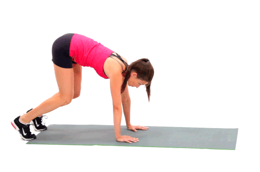动作要领:前两个动作都是相对静态的,可以激活腹部肌肉力量,这个动作就是训练腹部与腿部的协调能力,双手双脚俯撑在地面,核心收紧,然后双腿交替向前提膝跳一组做20-30次。