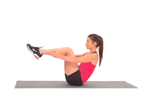 动作要领:坐立于垫子,身体略微后仰核心收紧双腿伸直向上抬高,身体成一个v字形,稳定后,双手扶住小腿缓慢的弯曲膝盖,然后伸直,这个动作主要训练腹部的稳定性控制力,激活腹部肌肉力量,弯曲膝盖是为了增加控制难度,一组做多久根据自身的情况决定。
