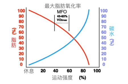 首先我们要知道,脂肪和碳水时时刻刻都在燃烧,只是比例问题,不存在运动半小时后才开始燃脂。对于普通成人来说,运动强度在45%~65% VO2max 时可以达到燃脂的率,即MFO,大约每分钟消耗0.17–1.27 克。当运动强度 > 65%,脂肪的燃烧率就逐渐下降。