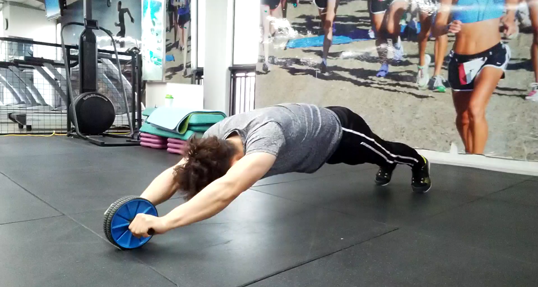同时手臂不要完全伸直,要有刻意弯曲。然后具体的腹肌轮一般放在额头下放就够了,腹肌轮的轨迹也不用太长,只要腹肌有拉伸感就可以往回收了。