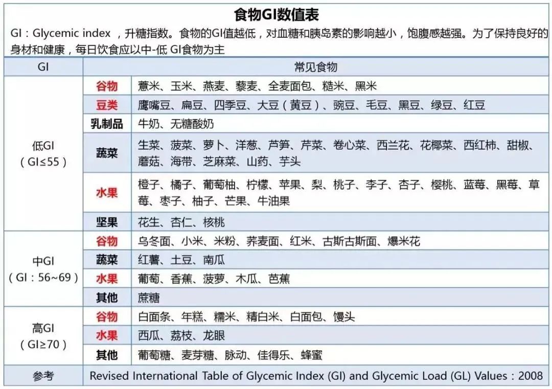 GI 值越高,餐后血糖就越高,胰岛素分泌越多,也就越容易形成脂肪,GI值的高低主要取决于食物中碳水化合物含量。