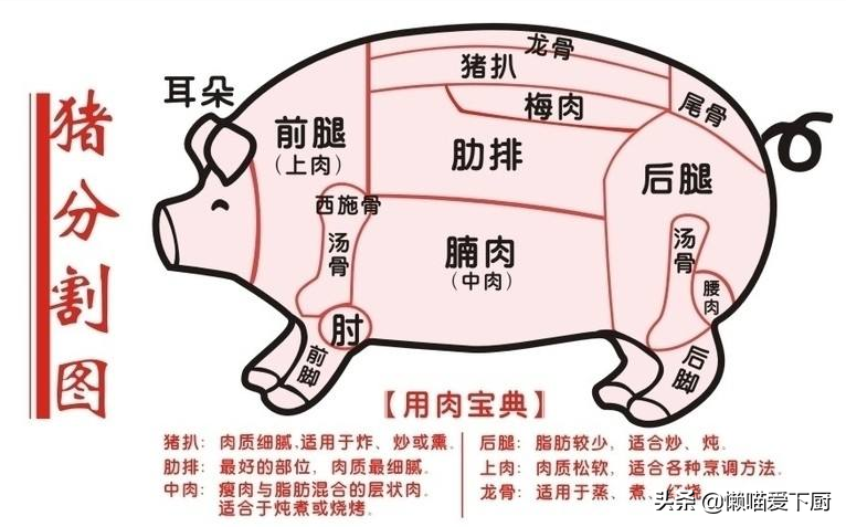 买对猪肉-部位很关键如果去超市,大家会发现,同样是猪肉,标签上的名字和价格都不一样。一知半解的我们,通常不知道买哪种好。贵的不一定是适合的,而便宜的也不一定就不能买,关键在于看我们要用来做什么,然后买到对应适合的。我们可以把猪肉简单分为两大类:猪骨头和纯肉。