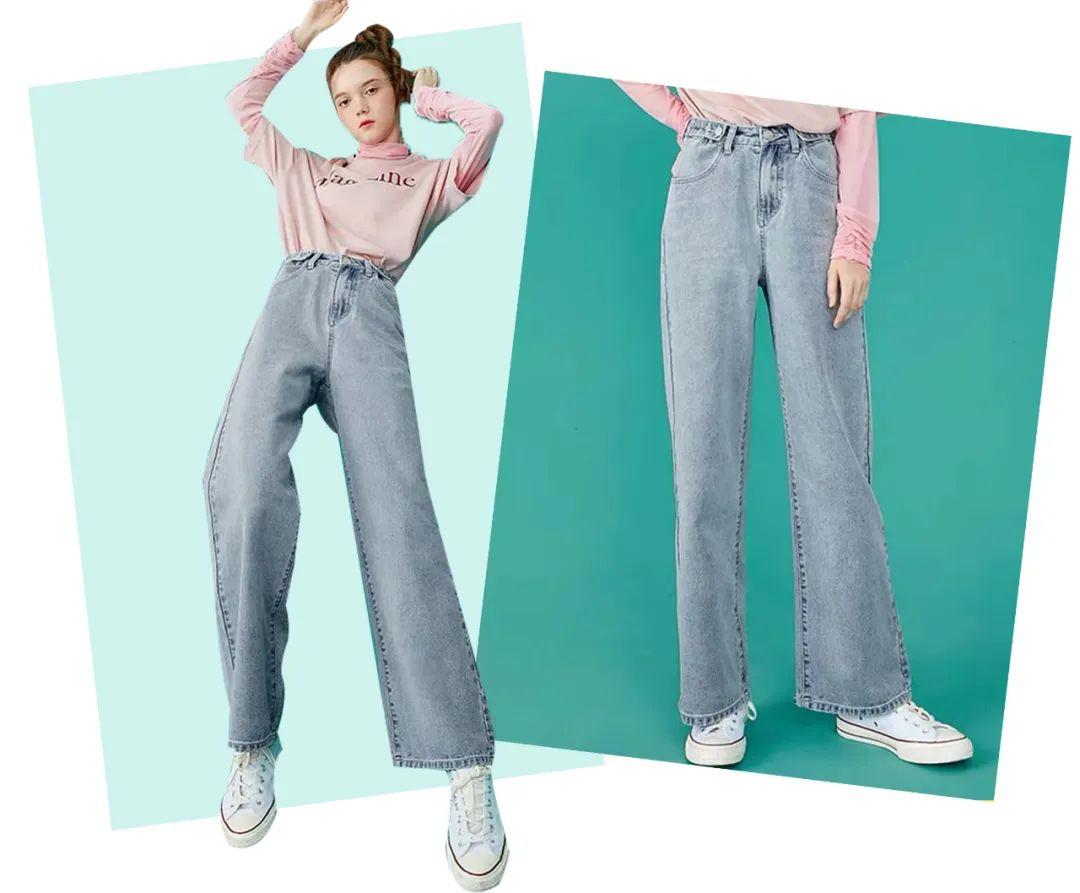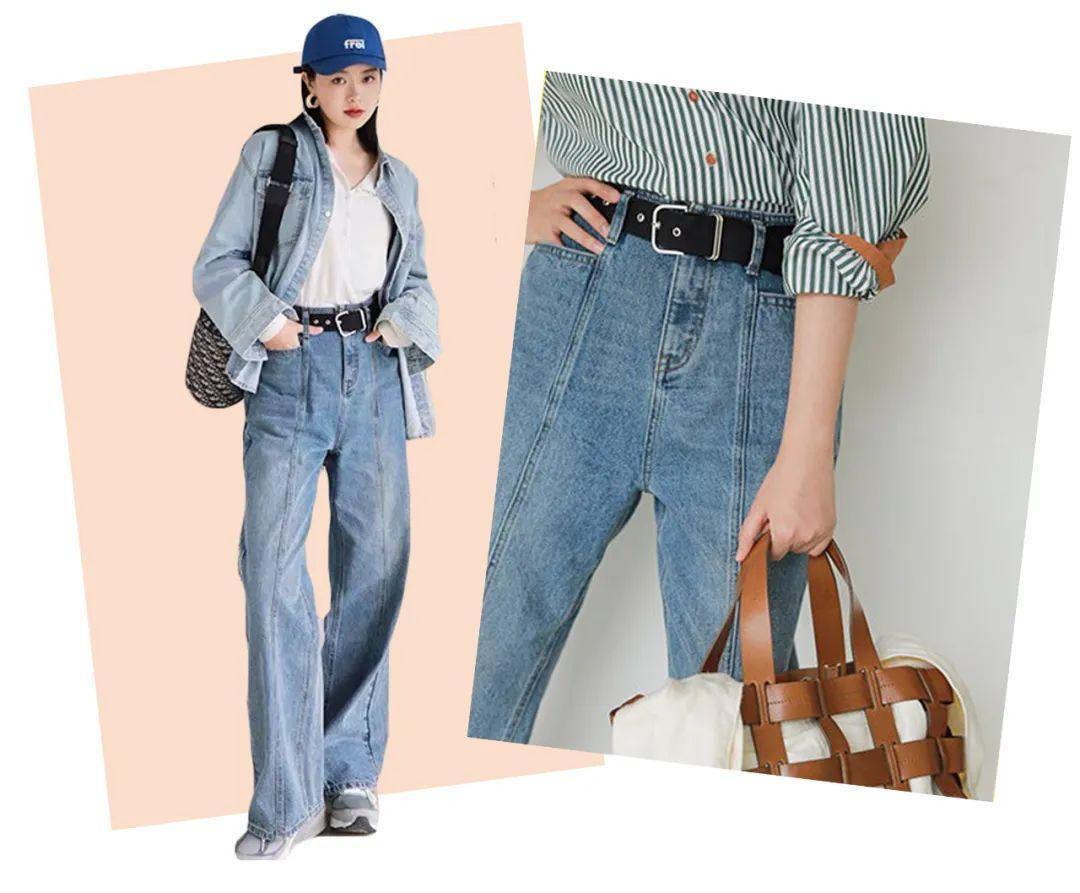 所以今天我就测试这两款,略A的版型更适合梨型身材,宽大的裤腿还能遮住臀部和大腿的肉肉,胯宽大腿粗的姑娘也能放心露腿~ 牛仔的材质就更显青春靓丽。