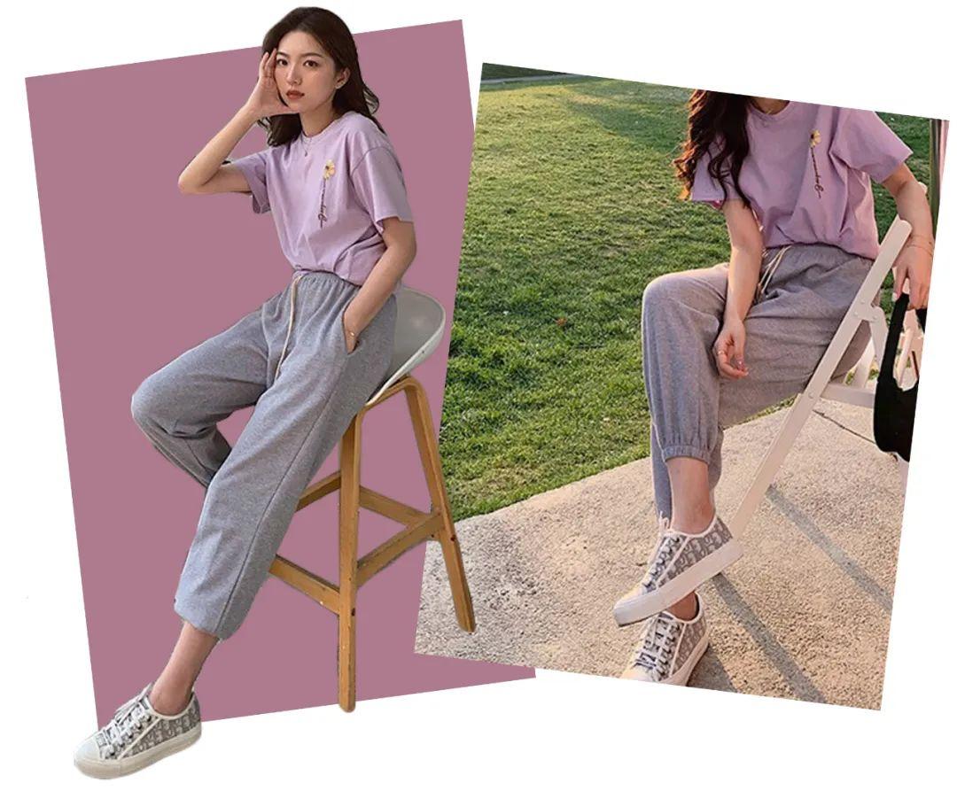 束脚裤通体版型以休闲宽松为主,裤脚则采用收缩设计,显得腿形纤细修长的同时上身又不拖沓,也因此对身材要求不严格,既可做时尚单品搭配,又可居家逛街休闲散步之用。