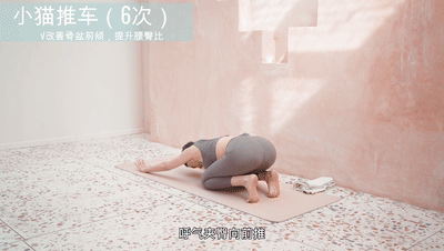 3、吸气,缓慢落下。换侧抬起左脚,左膝和双手产生对抗,感觉腹股沟收紧发力。