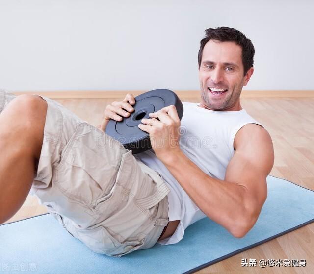 注意:杠铃片可以直接贴于腹部或者向上举高保持不动,增加负重可以强化腹直肌厚度。