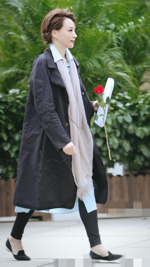 而她虽然穿着黑色风衣,但是一双小鸟腿也格外的抢镜,足以证明她在私下对于身材管理还是严格的,也完全看不出她是47岁的人。