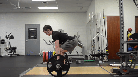 针对竖脊肌,选择做“屈腿杠铃硬拉”,站于杠铃中间位置,屈膝屈髋,双手正握杠铃,收紧背部和下肢后链肌群,双脚用力蹬地,将杠铃沿着小腿前侧向上拉至大腿前侧锁定即可。