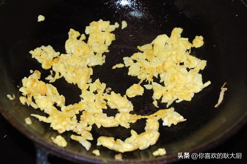 4、鸡蛋两三个,炒成鸡蛋碎备用。