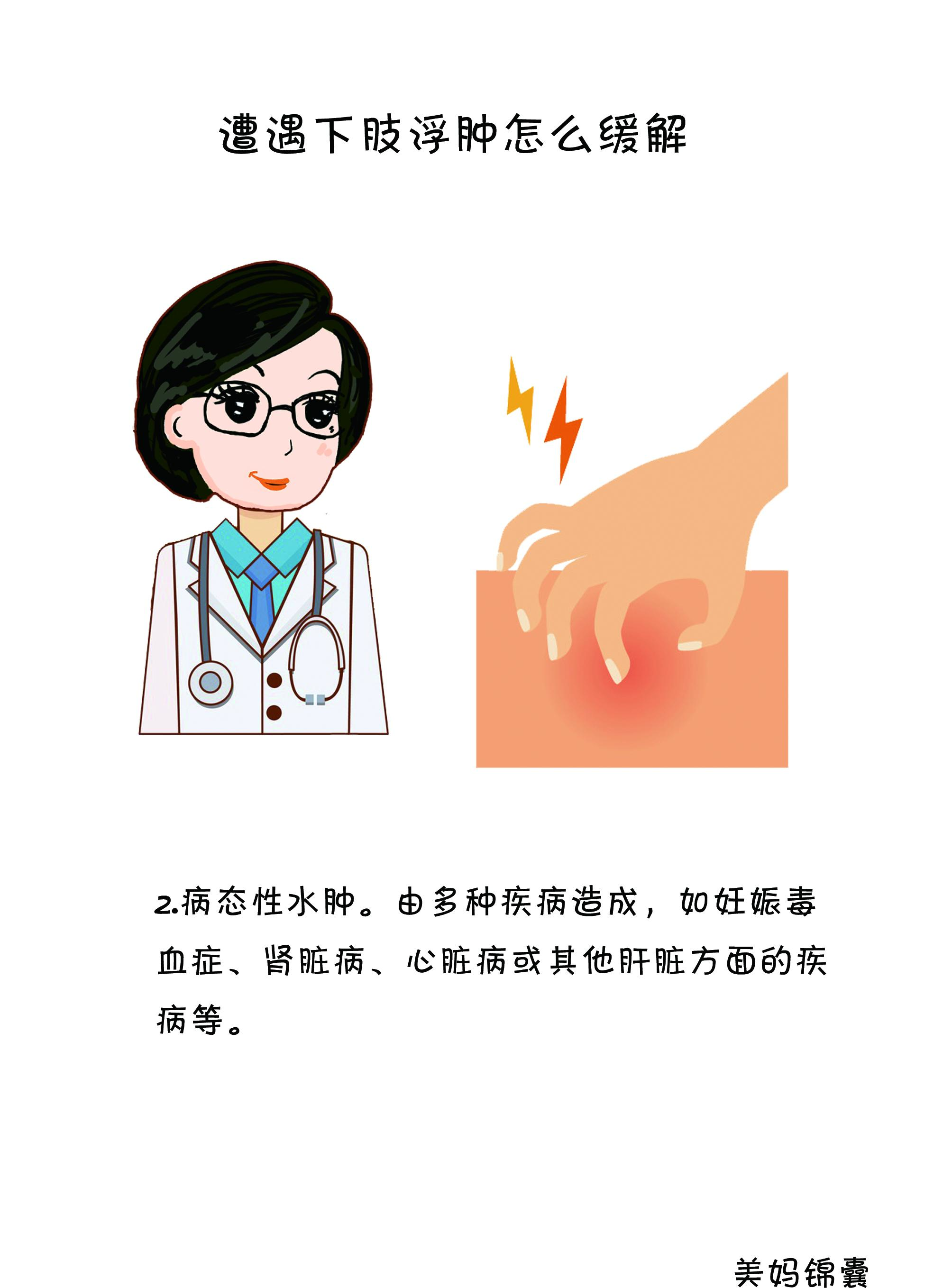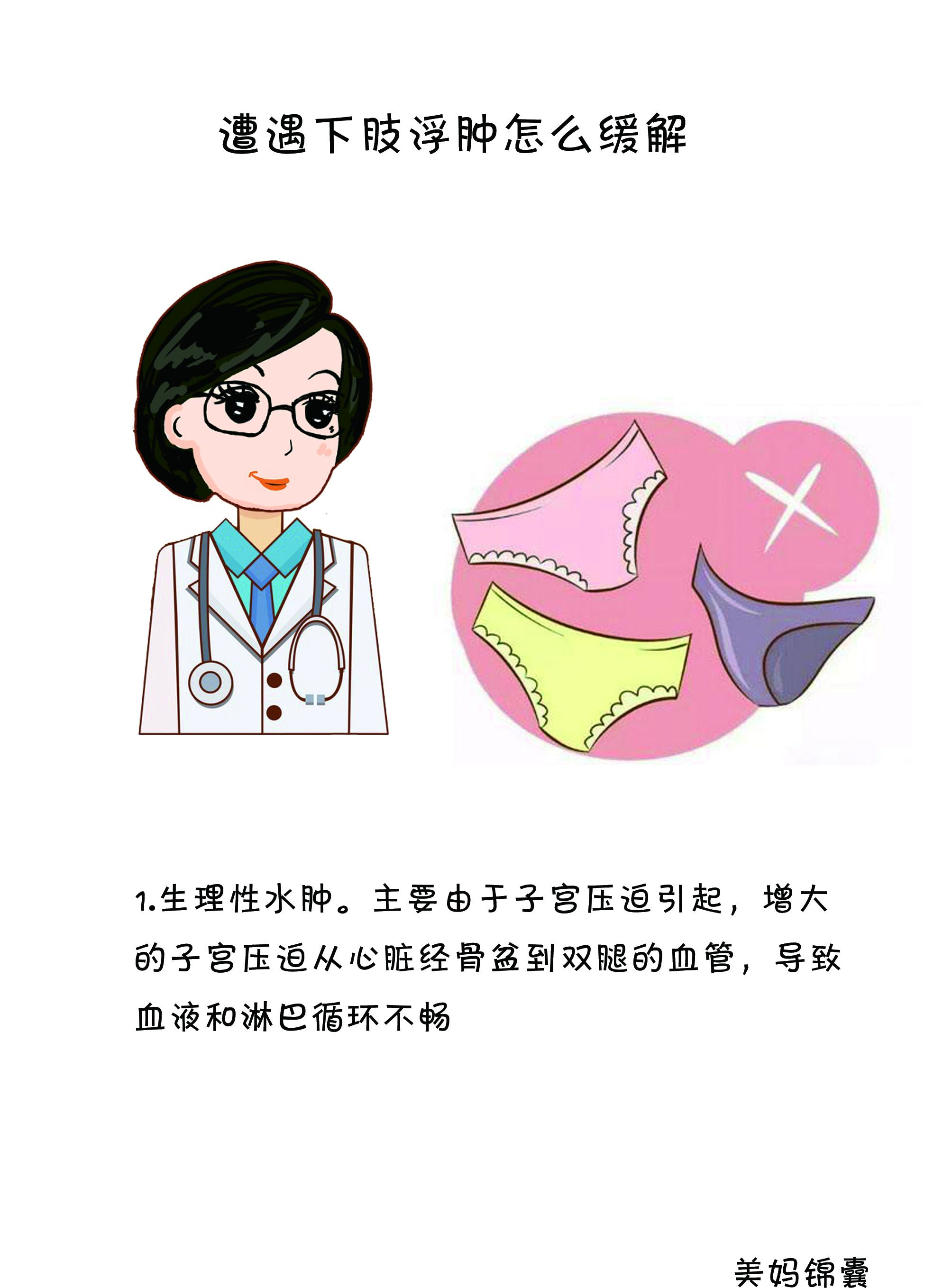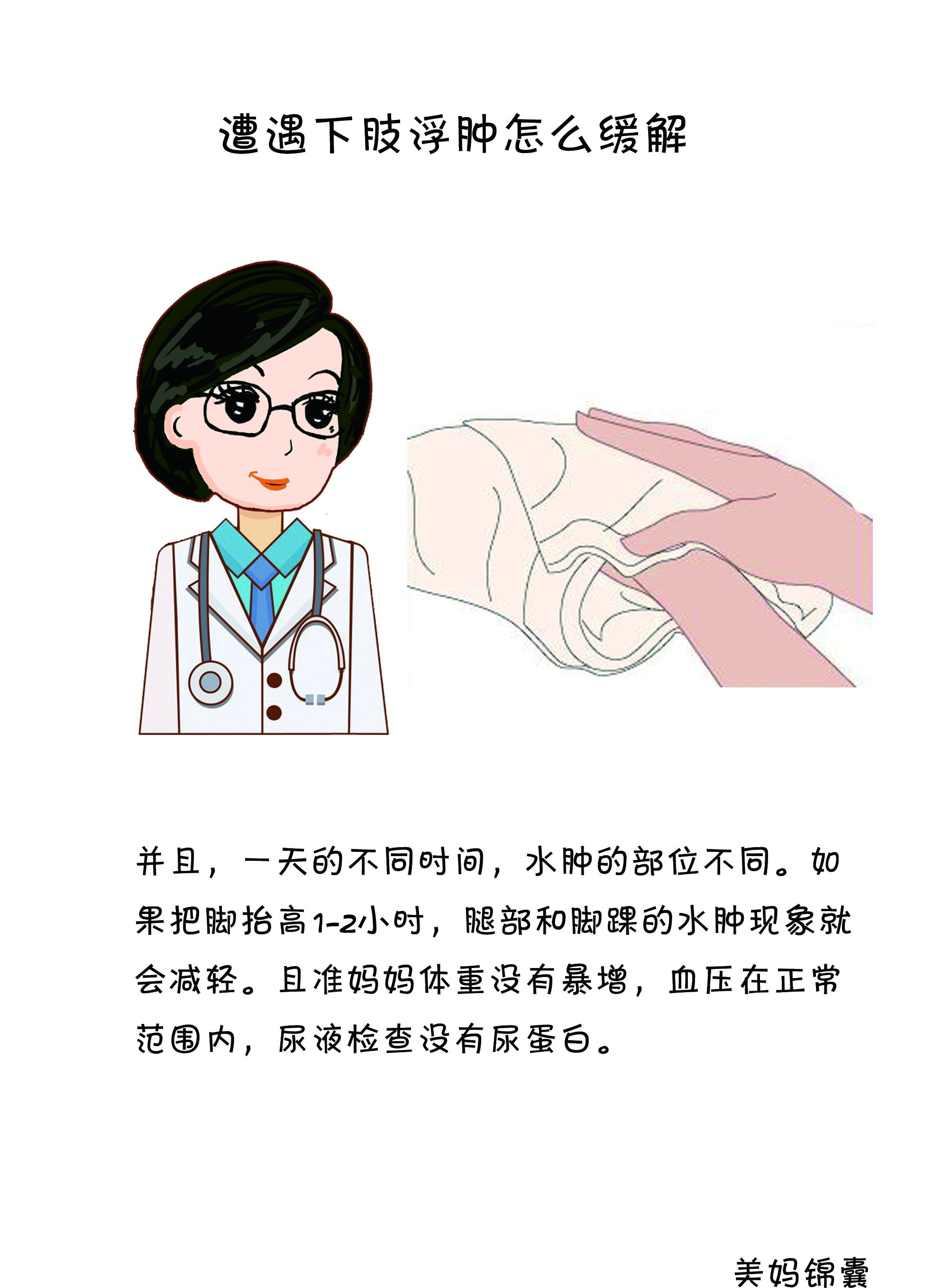 1.生理性水肿。主要由于子宫压迫引起,增大的子宫压迫从心脏经骨盆到双腿的血管,导致血液和淋巴循环不畅,代谢不良,腿部组织体液淤积,一般多出现在脚踝或者膝盖下方。通常早晨症状不,经过一天的活动后,下午开始,至就寝前逐渐严重。并且,一天的不同时间,水肿的部位不同。如果把脚抬高1-2小时,腿部和脚踝的水肿现象就会减轻。且准妈妈体重没有暴增,血压在正常范围内,尿液检查没有尿蛋白。
