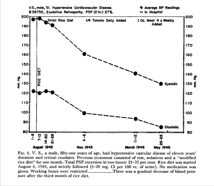 大米水果+白糖,缓解胰岛素抵抗1939年,任教于杜克大学的德国医生Walter Kempner计划用一种“大米饮食”调节肥胖,拯救患者,终成功调节超过18000名肾病、糖尿病、高血压等等疾病患者。