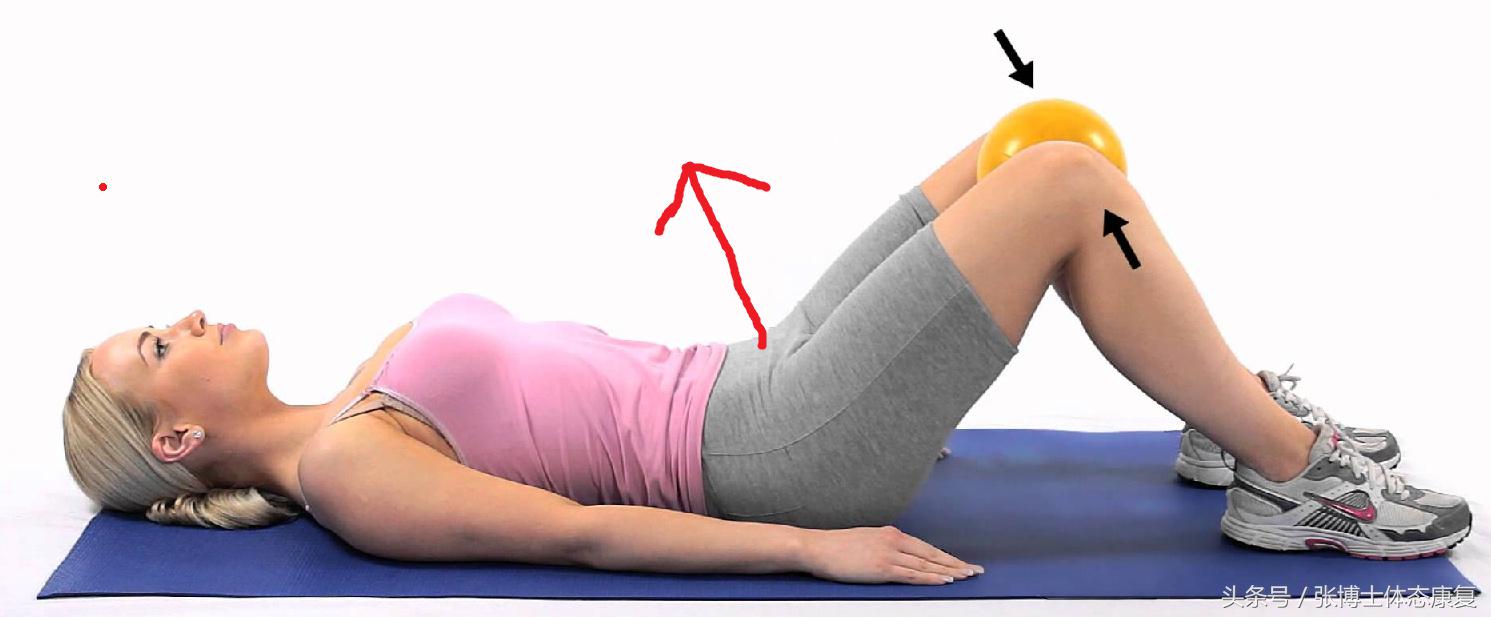 5、夹球臀桥,两腿挤压小球,同时臀部向上抬起,20次,做3组