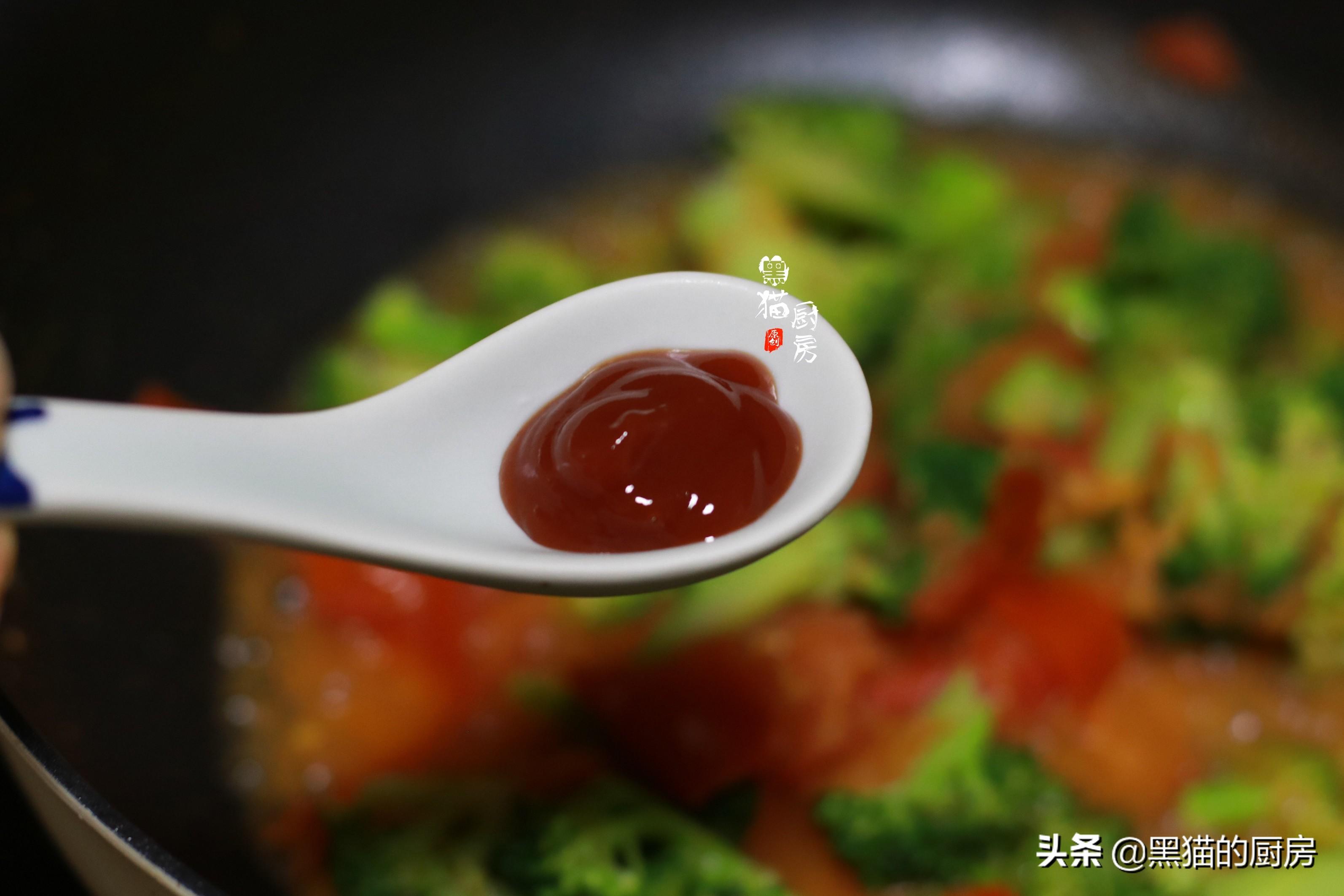 5.减肥也不要吃得太单调,一小勺番茄酱,酸甜口感,能让这道素菜味道更丰富,酸酸甜甜也很好消化哟。