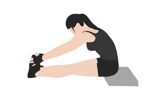 坐在瑜伽垫上,双腿贴紧地面,并拢伸直,身体坐直,双脚和地面呈90度垂直,上半身向腿部靠拢,双手向前伸,努力抱住双脚脚掌,并且把脚掌向身体方向掰,感觉小腿后部肌肉有拉伸感时保持动作不变形20秒,然后放松5秒,再抱住脚掌,不断反复。