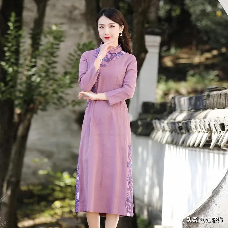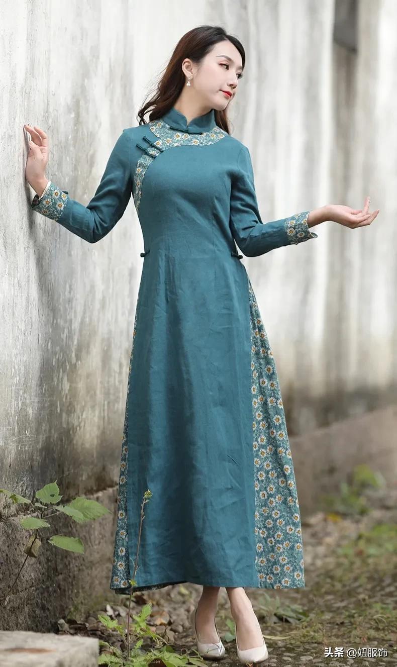 开叉民国改良旗袍裙改良旗袍连衣裙,年轻款时尚改良气质中长款清代开叉民国裙子,古典盘扣,手工缝制,玲珑别致。