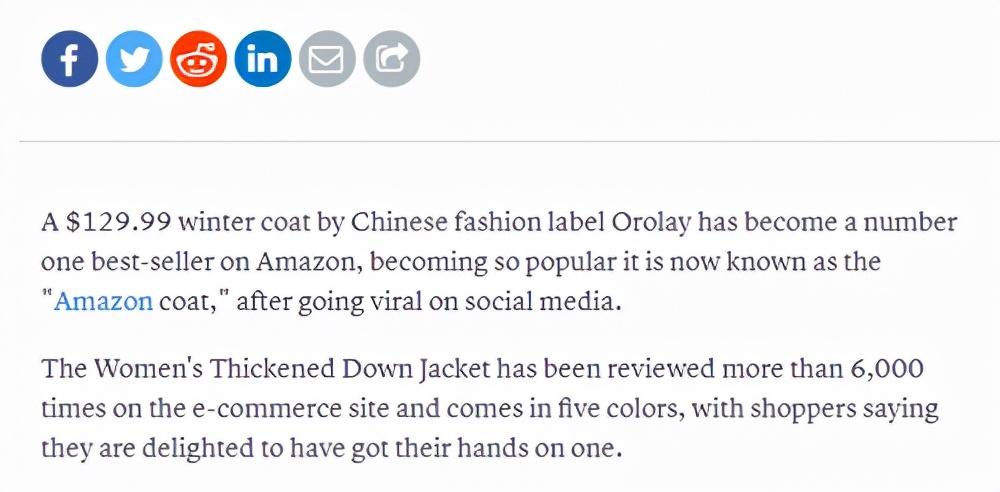 它被称为“亚马逊外套”,为什么会被叫做亚马逊外套呢?因为过去三年里,亚马逊平台上冬季畅销的羽绒服,一直被一款名为Orolay给占领。