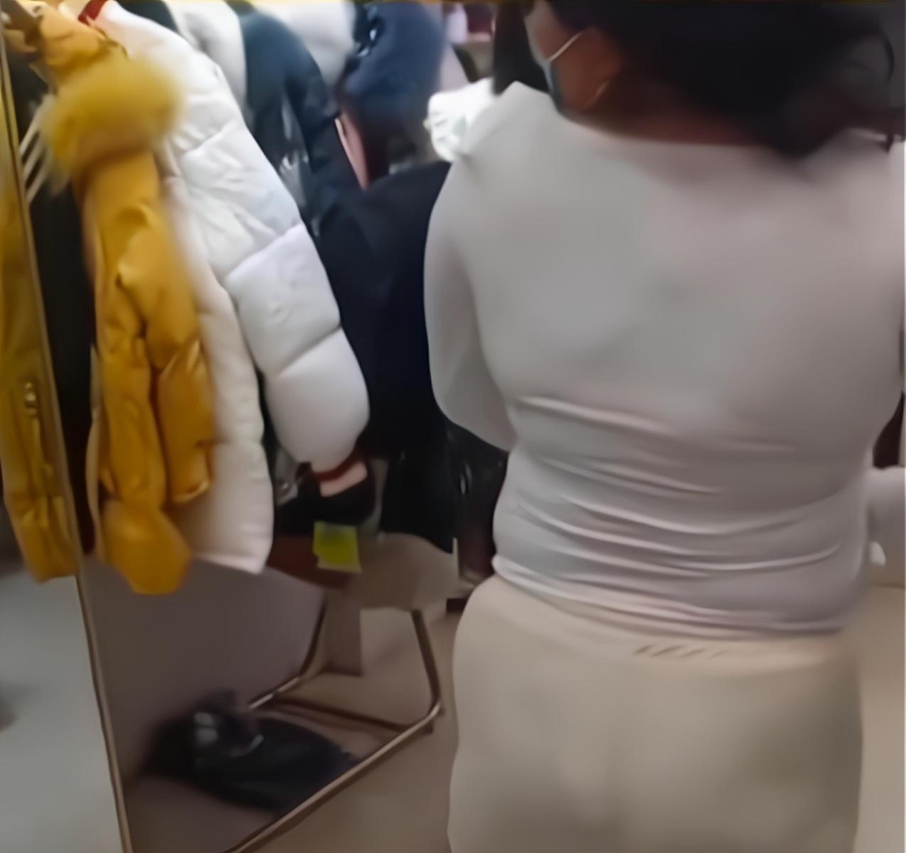 这时,陪同这位女子买衣服的朋友一直站在一旁,看到女子试穿的衣服果,确实难以苟同店主的溢美之辞。明明女子穿上这件衣服,显得比较瘦小,就像绑在身上一样。